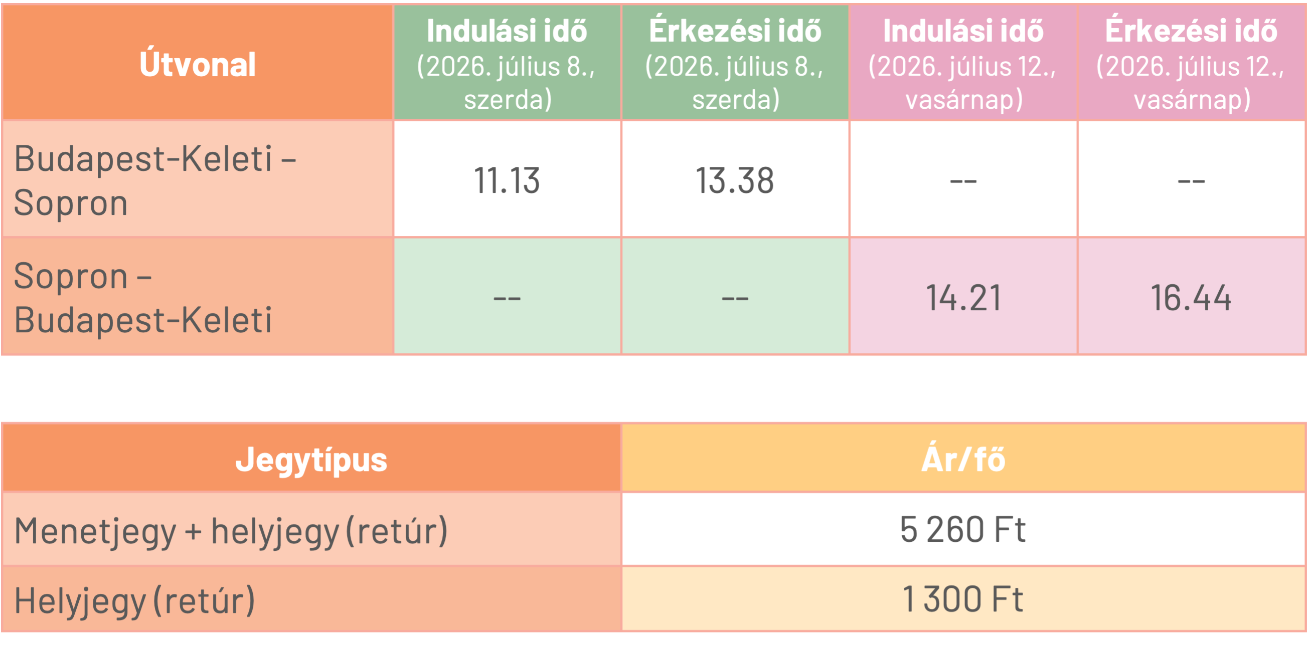 Fontos! Menetjegy és helyjegy váltására külön-külön nincs lehetőség: ha nálunk csak helyjegyet vásárolnál, csak menetjegyet erre a vonatra külön nem tudsz vásárolni a GYSEV/MÁV pénztársaiban sem.